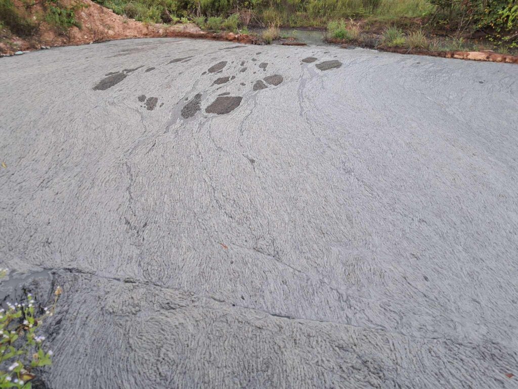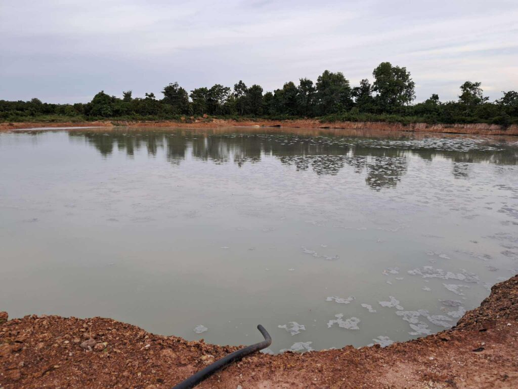 ទិដ្ឋភាពសំណល់រាវបញ្ចេញពីរោងចក្រកែច្នៃស្វាយរបស់ក្រុមហ៊ុន ហៅរួយដា ដែលមានទីតាំងស្ថិតនៅក្នុងភូមិប្រីពីរ ឃុំស្រែជាខាងជើង ស្រុកដងទង់ ខេត្តកំពត នៅថ្ងៃទី៨ ខែសីហា ឆ្នាំ២០២៥។ (ប៉ូ សាគុន)